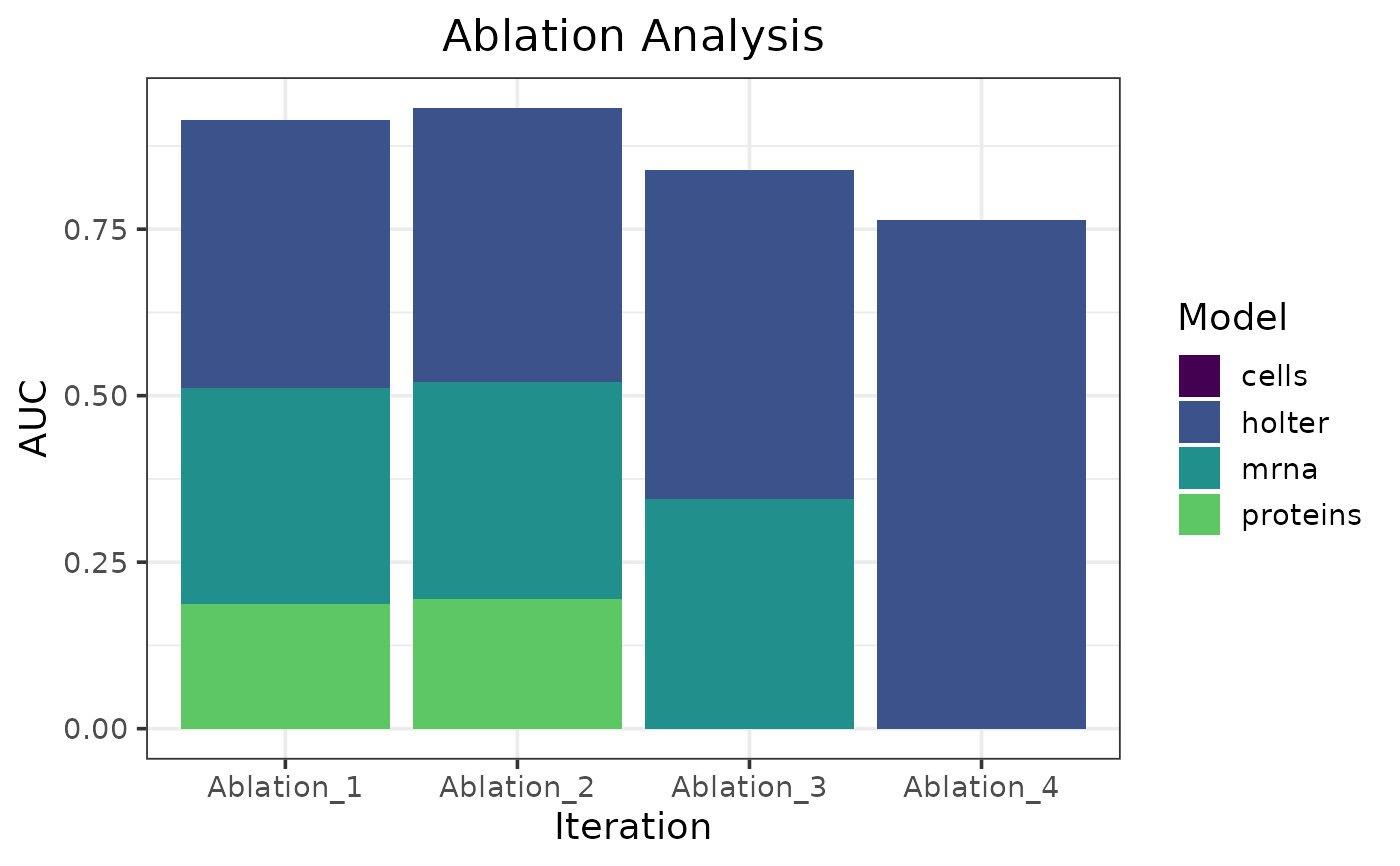 Make a bar plot of an ablation analysis for a caret_stack.